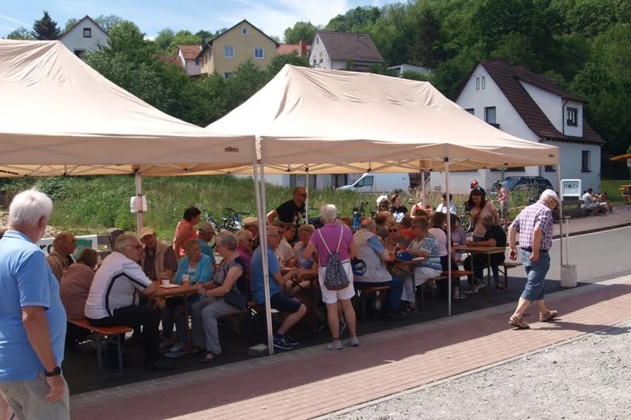 Bei Bratwurst und kühlen Getränken feierte man bis in die frühen Abendstunden. Doch auch an die kleinen Gäste wurde gedacht. Neben Hüpfburg, Mal- und Bastelstraße standen auch Schnupper-Fahrten mit dem Werra-Express auf dem Programm.