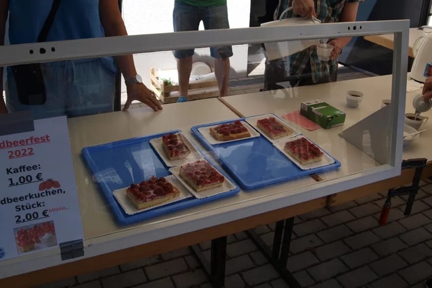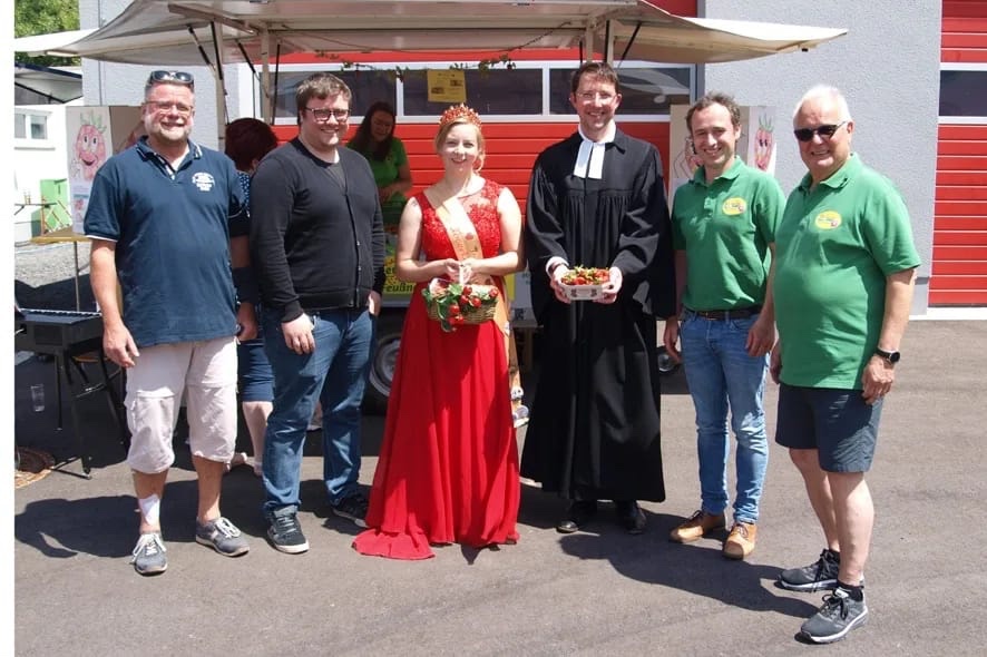 Bei strahlendem Sonnenschein durften die zahlreichen Gäste viele Köstlichkeiten rund um die rote Frucht erleben. So gab es Erdbeersekt vom Partnerschaftsverein Meinhard, Erdbeer-Radler von der Freiwilligen Feuerwehr, Erdbeerbowle und -Schnaps vom Heimatverein sowie Waffeln mit Erdbeeren vom Kindergarten Sonnenschein. Der TSV Frieda bot traditionell seinen leckeren Erdbeerkuchen zum Kauf an.