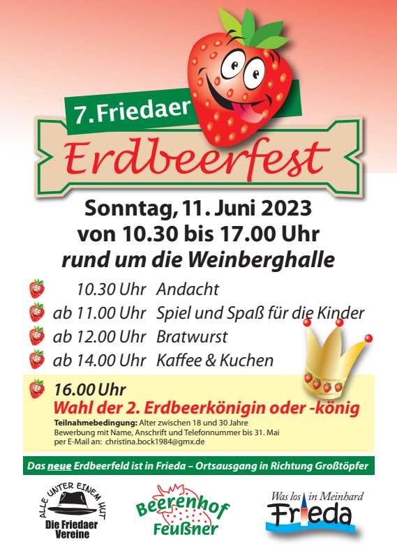 Die Fried’schen Vereine veranstalten am Sonntag, 11.06.2023 wieder gemeinsam das Fest rund um die Erdbeere.