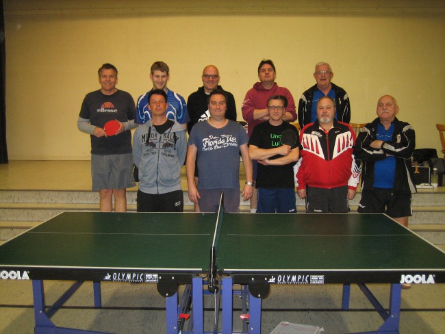 Die diesjährigen Tischtennis-Vereinsmeisterschaften des TSV Frieda um den begehrten Doppelpokal fanden am 08.01.2016 im Areal der Weinberghalle statt. Der Zuspruch war erwartungsgemäß groß, weil diese Veranstaltung sich größter Beliebtheit erfreut. Es nahmen 10 TT-Haudegen teil. Den nach Setzliste 5 stärksten Spielern wurde jeweils ein nach Setzliste Schwächerer zugelost. Dies ergab die Doppelpaarungen Böksen/Döring, Marquardt/Hering, Holzapfel/W.Jung, Fischer/O.Schott und S.Schmerbach/Petri (siehe Bild).