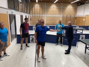 Mit 10 Teilnehmern war das Starterfeld gut gefüllt, sodass in 2 Gruppen – selbstverständlich unter Einhaltung der Hygieneregeln – im System „Jeder-gegen-Jeden“ gespielt wurde. Die jeweils Erst- und Zweitplatzierten jeder Gruppe zogen dann ins Halbfinale ein.