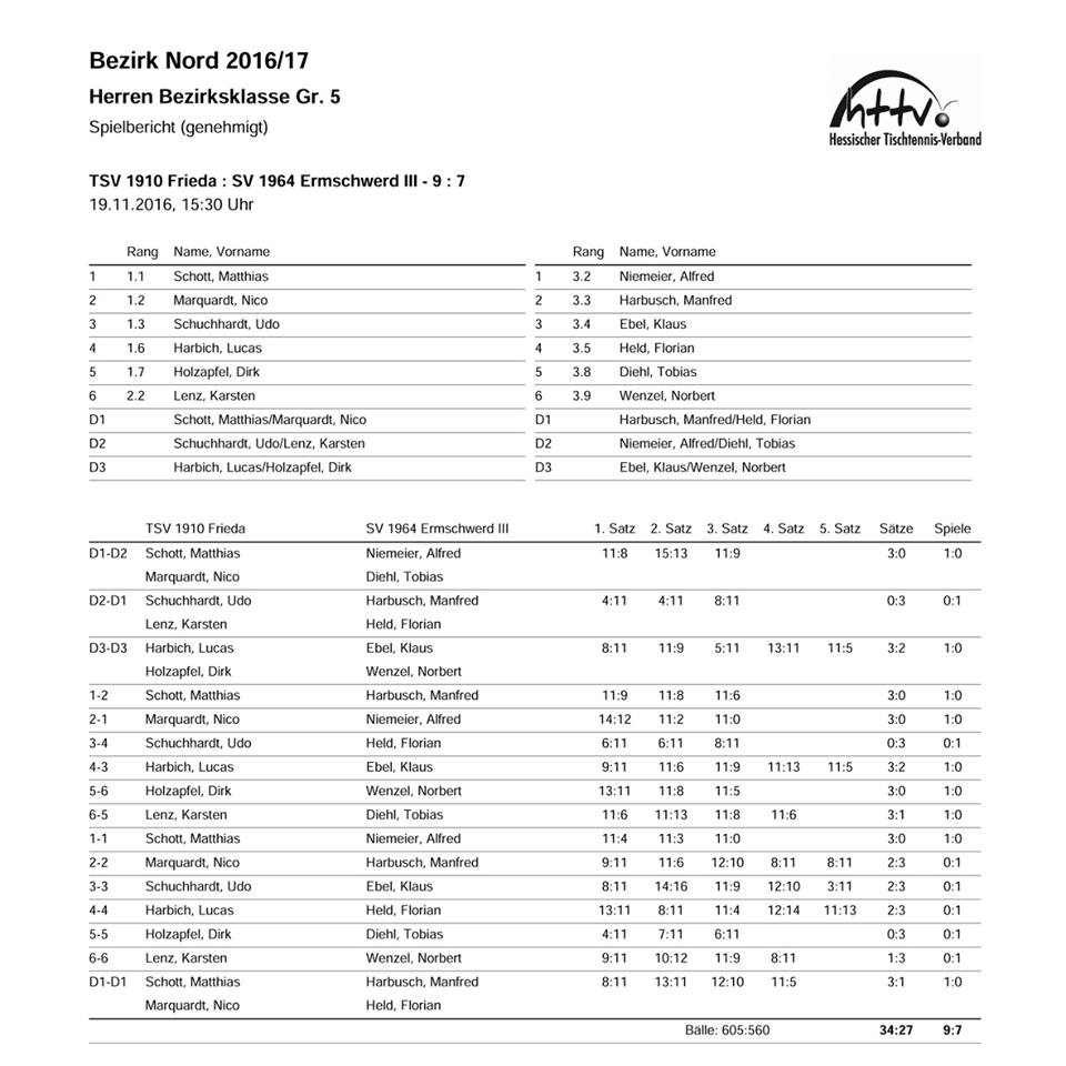 Alles in allem ein verdienter Sieg, der trotz 8:2-Führung noch arg ins Wanken geriet. Durch diesen Erfolg hat sich unsere Erste etwas von seinen Verfolgern absetzen können und kann auch im letzten Vorrundenspiel am 03.12.2016 gegen Hessisch Lichtenau nicht mehr vom Relegationsplatz 2 verdrängt werden. Diese Tabellenposition sollte bis zum Saisonende auch beibehalten werden können. Sofern jedoch am ersten Rückrundenspieltag der Spitzenreiter Unterrieden in der Weinberghalle geschlagen werden könnte, ist vielleicht sogar noch mehr drin.