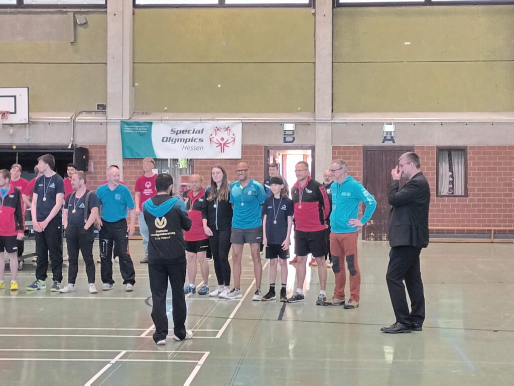 Aber auch Doppel wurde gespielt. Um dem Gedanken der Inklusion gerecht zu werden, wurden die Doppelpaarungen jeweils aus einem Athleten (Menschen mit Beeinträchtigung) und einem Unified-Partner (Spieler) zusammengestellt. Sowohl Timo, als auch Kyra erhielten jeweils einen Athleten vom Bodelschwingh-Hof Mechterstedt (Landkreis Gotha / Thüringen) zugelost. Beide spielten mit ihren Athleten wirklich tolle und spannende Spiele und man konnte allen den Siegeswillen anmerken.