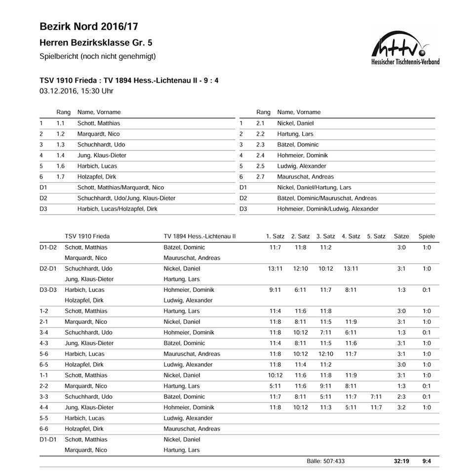Zum Abschluss der Vorrunde wurde unsere Erste ihrer Favoritenrolle gerecht und siegte gegen den letztjährigen Angstgegner Hessisch Lichtenau mit 9:4.