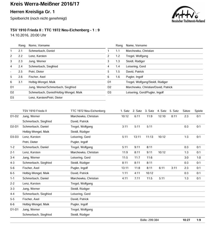 Eine derbe Klatsche kassierten die II. Mannschaft am gestrigen Abend: mit 1:9 gingen Schmerbach & Co. völlig chancenlos unter, einzig oldie Werner Jung konnte sein Einzel erfolgreich gestalten.