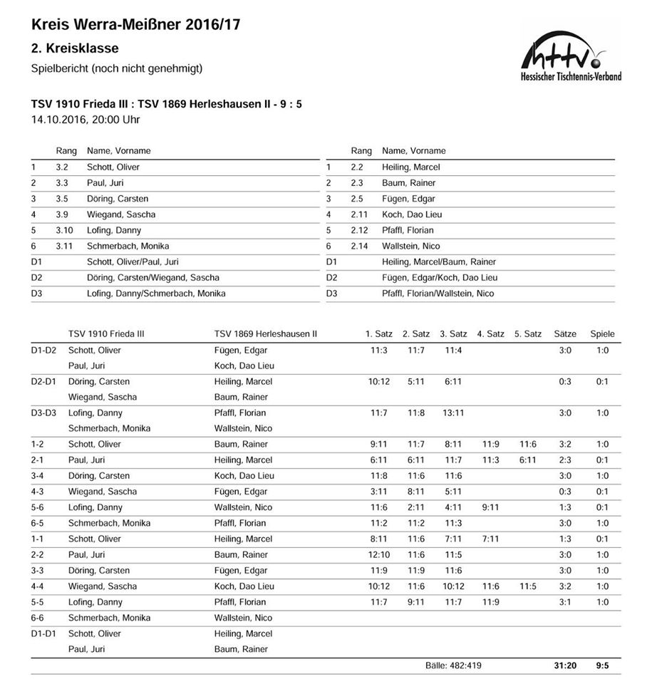 Im zweiten Durchgang verlor Schott, doch Paul, Döring, Wiegand und Lofing feierten allesamt Siege, so dass die „Friedschen“ um 22.10 Uhr den ersten (und hoffentlich nicht letzten) Saisonsieg bejubeln konnten.