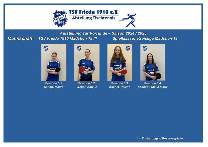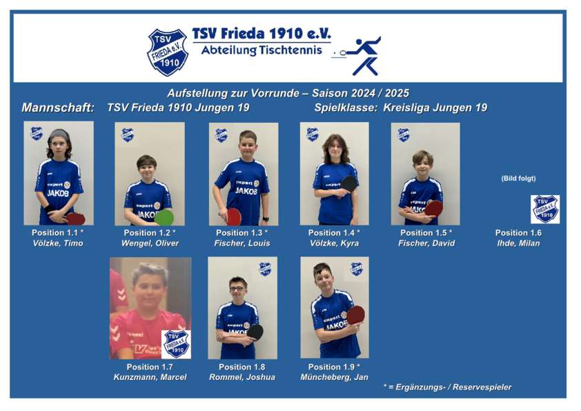 Neu hinzugekommen ist unsere Jungen 19, die in der Kreisliga Jungen 19 aufschlagen wird. Da in dieser Mannschaft auch einige noch nicht allzu erfahrene Spieler zum Einsatz kommen werden, heißt es hier: Erfahrungen sammeln.