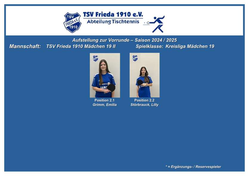 Unsere Mädchen spielen wie im Vorjahr in drei Mannschaften in der Kreisliga Mädchen 19/15 und nehmen sicherlich alle den Titel ins Visier. Die einzige Änderung hierbei ist, dass nunmehr alle drei Mannschaften einheitlich als AK 19 gemeldet wurden.