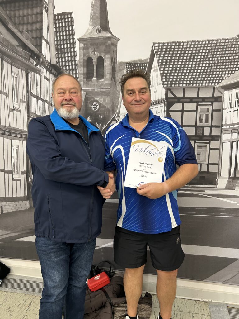 Axel Fischer – Spielerverdienstnadel Gold für 25 Jahre aktives Tischtennis