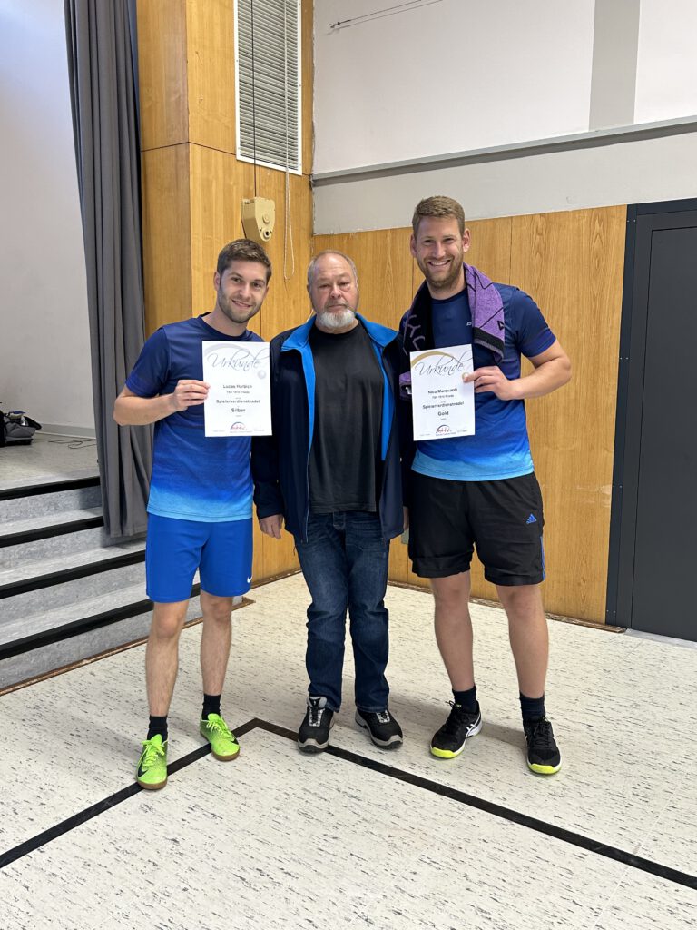 Spielerverdienstnadel Silber für 20 Jahre aktives Tischtennis Nico Marquardt (rechts) Spielerverdienstnadel Gold für 25 Jahre aktives Tischtennis