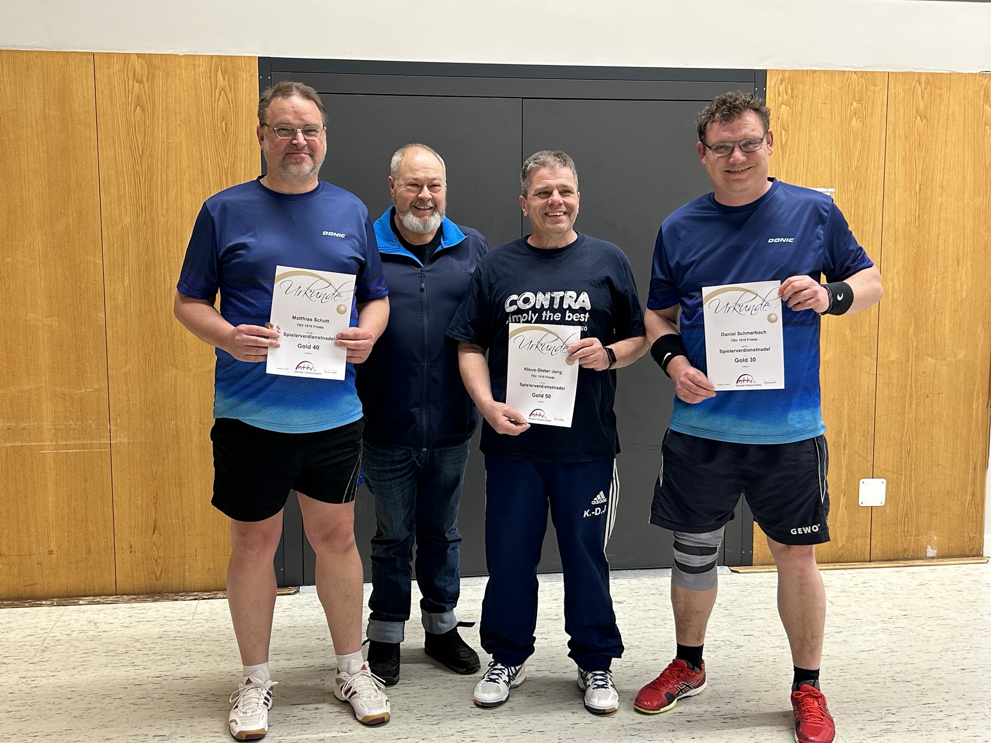 Im Rahmen des Spieltags der 1. Herren-Mannschaft am 28.03.24, wurden weitere Spieler mit der Spielerverdienstnadel des Hessischen Tischtennisverbandes ausgezeichnet.