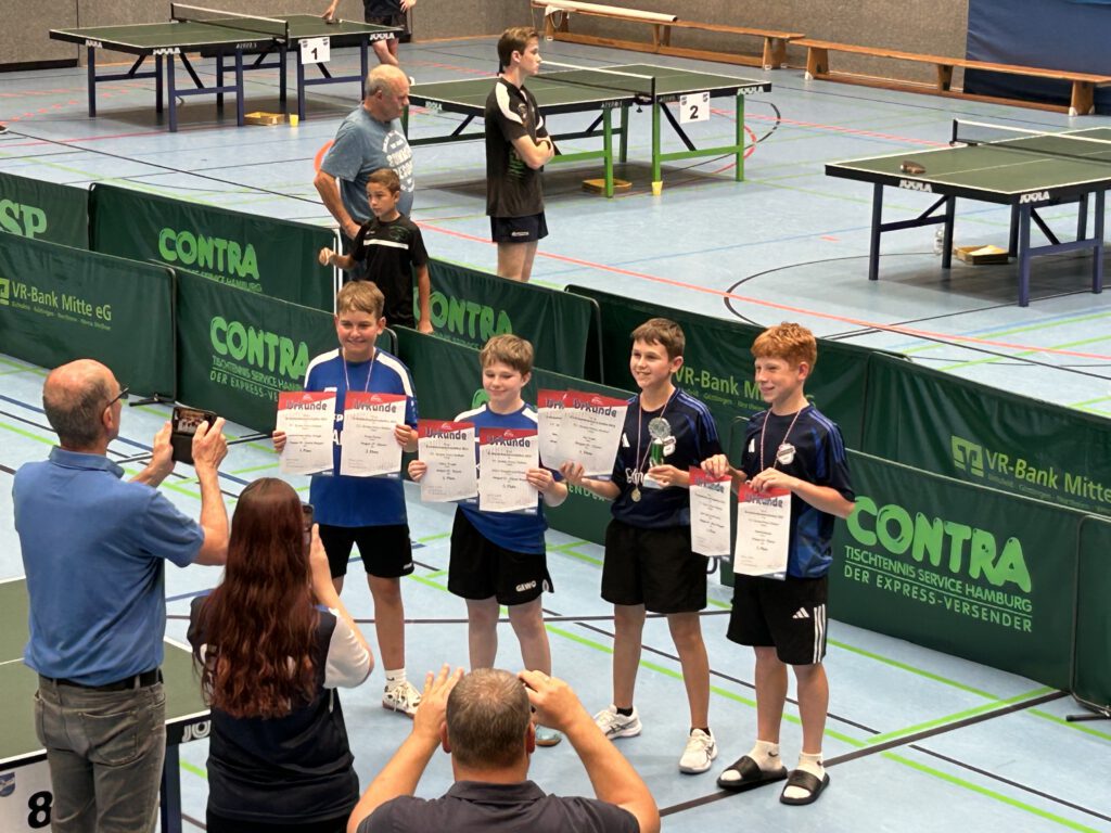 Bei den Jungen konnten sich Oliver Wengel und Louis Fischer jeweils als Gruppensieger ungeschlagen durchsetzen und erreichten die KO-Runde. Aber auch Milan Ihde kam als Gruppen-Zweiter weiter. Im Viertelfinale standen sich dann die beiden TSV-Spieler Milan und Oliver gegenüber, ein Duell, das Oliver für sich entscheiden konnte.