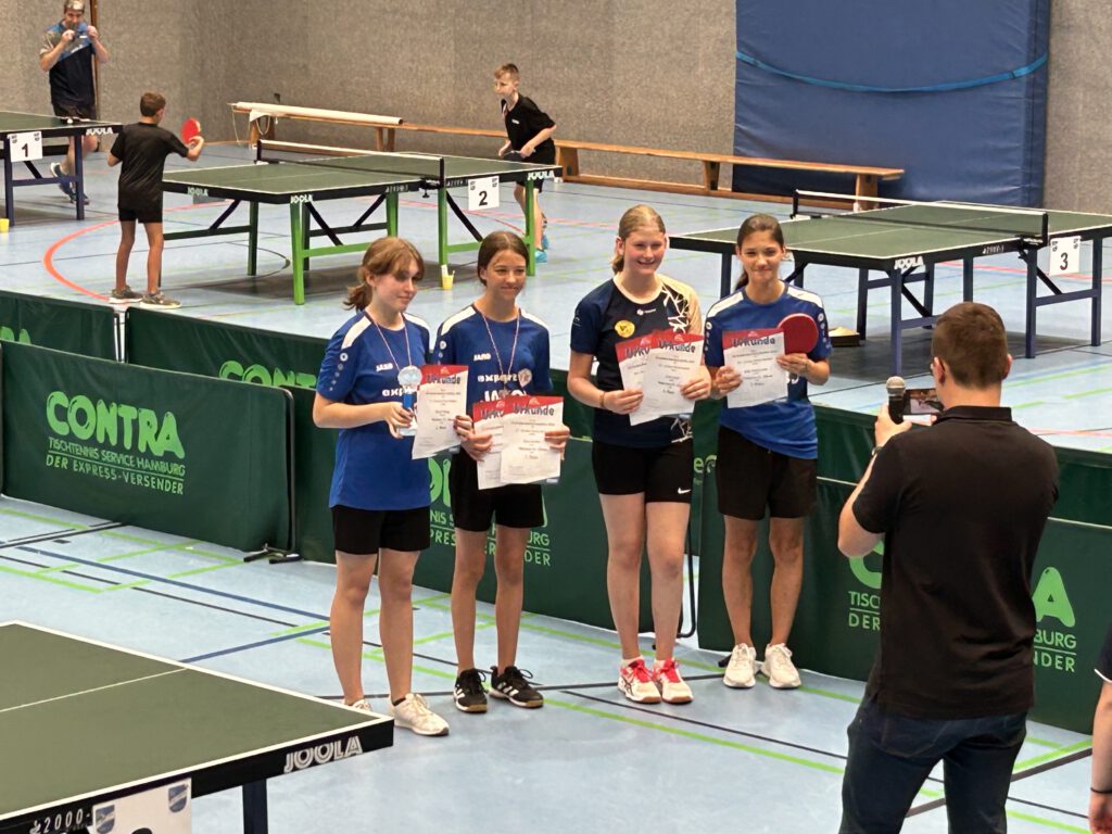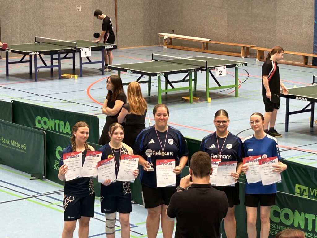 Lina Fischer musste gegen Lilly Störbrauck und Kyra Völzke gegen Helene Kachel ran. Hierbei konnten sich Lina und Kyra gegen ihre Vereinskameradinnen durchsetzen. Im weiteren Verlauf gewannen sowohl Kyra als auch Lina ihre Spiele und zogen beide als Gruppensieger in die KO-Runde ein. Während Lilly als Gruppenzweite es ebenso schaffte, war für Helene das die Einzeldisziplin nach der Gruppenphase beendet. Dennoch konnte sie, obwohl sie noch nicht allzu viel Spielerfahrung hat, auch ein Spiel für sich entscheiden. Unsere drei Mädels Kyra, Lina und Lilly kämpften sich bis ins Halbfinale, in dem sich ausgerechnet Kyra und Lilly gegenüberstanden. Erwartungsgemäß ging Kyra hieraus als Siegerin hervor. Lina zeigte im zweiten Halbfinale eine tolle Leistung und konnte sich mit 3:2 durchsetzen.