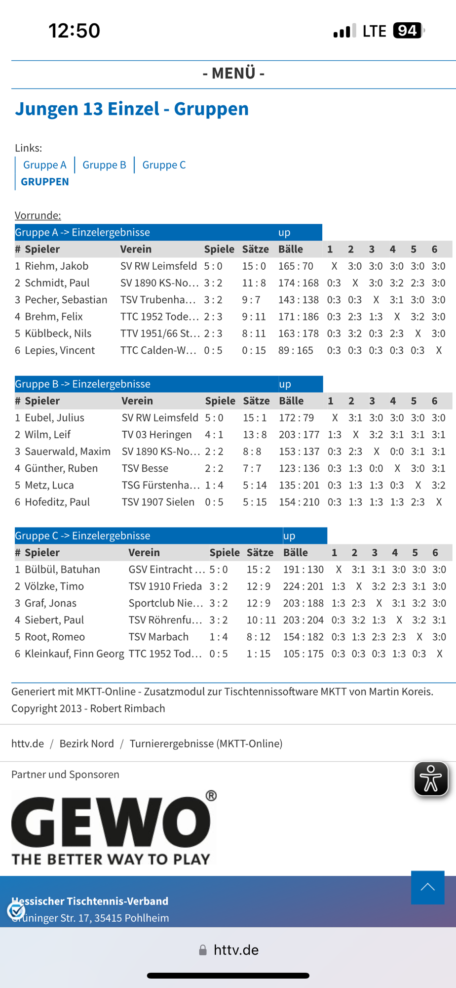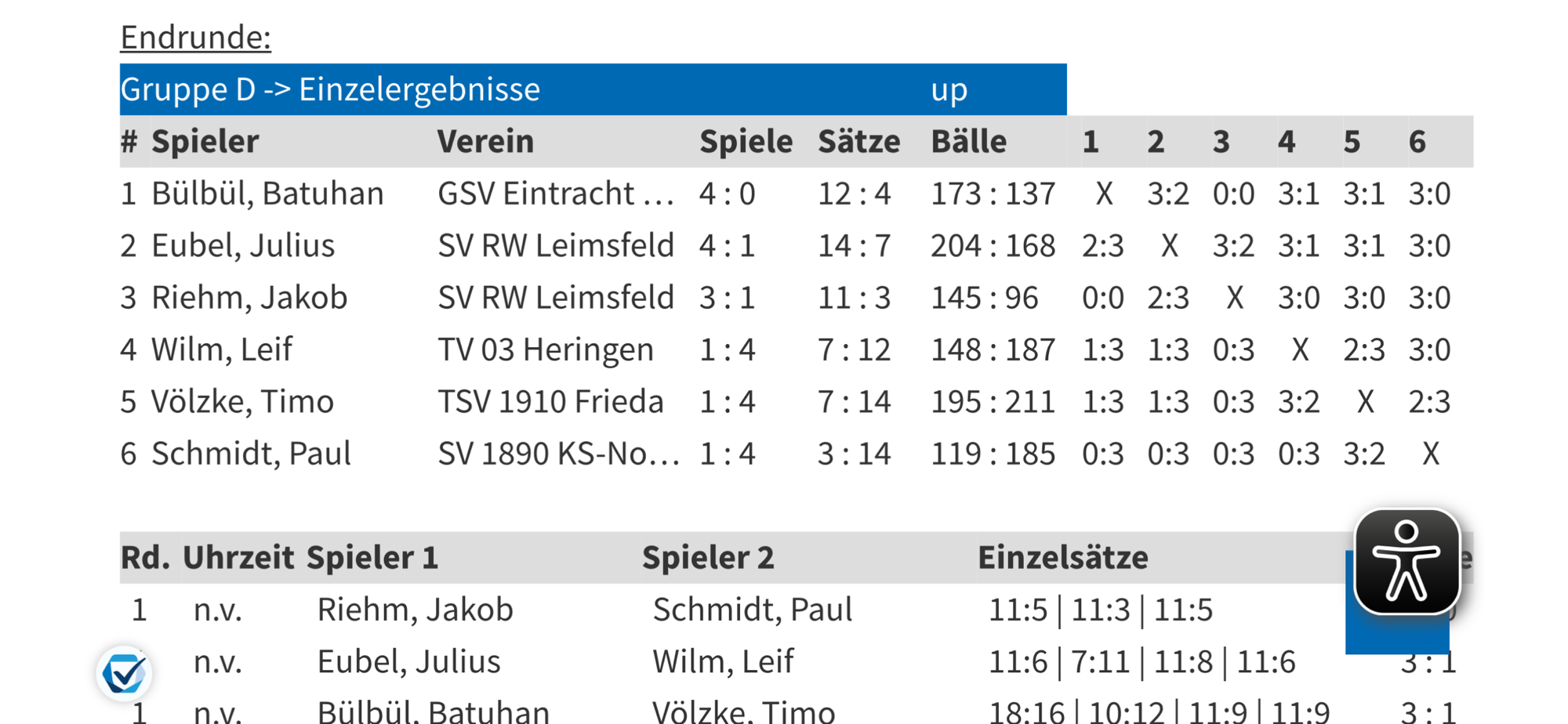 Doch am Ende reichte es leider nicht. Zwar hatte Timo im direkten Vergleich gegen den viertplatzierten Leif Wilm mit 3:2 gewonnen, doch am Ende fehlten ihm zwei Sätze zum 4. Platz und somit zur HTTV-Qualifikation.