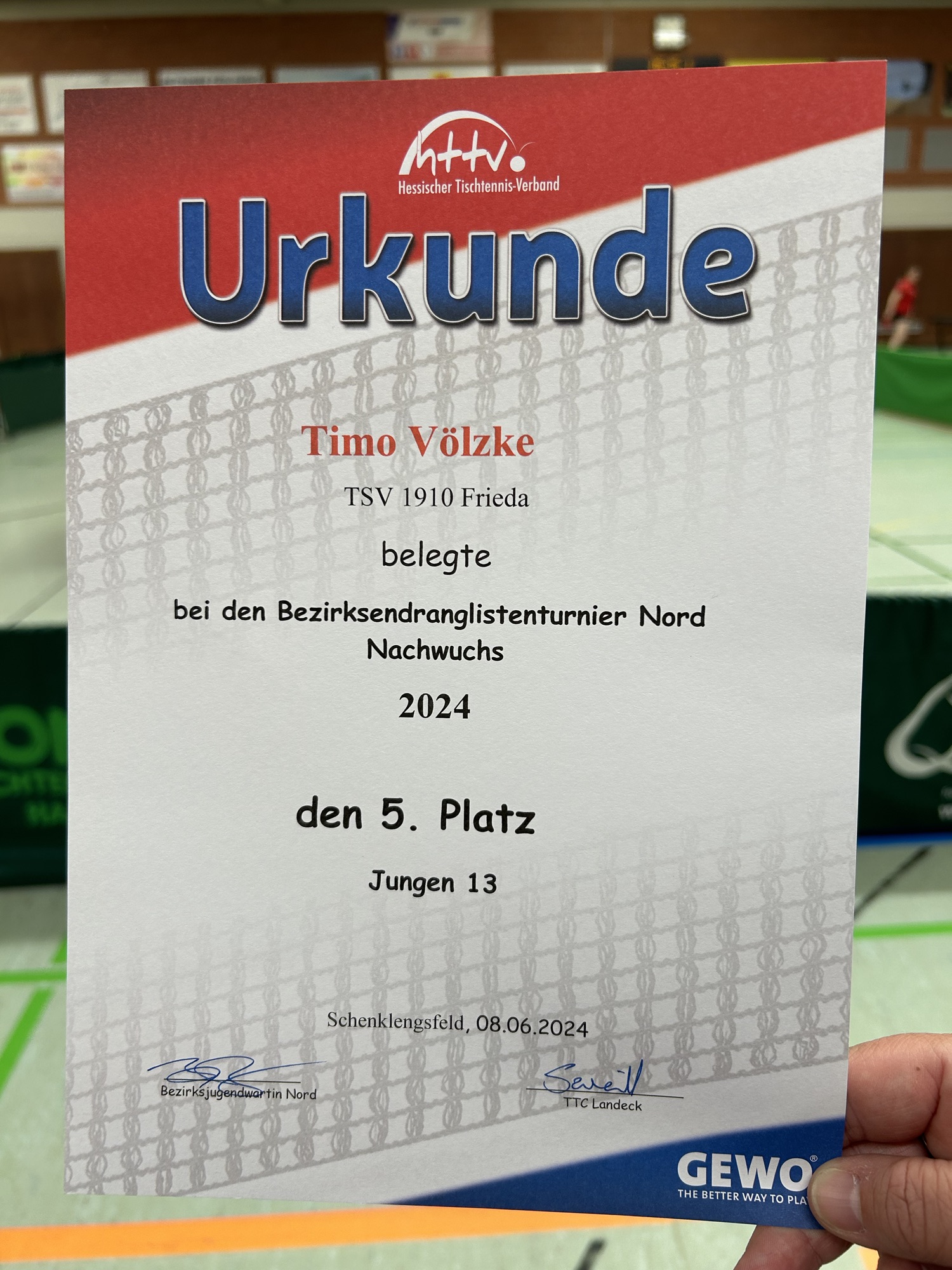 Dennoch belegte Timo einen hervorragenden 5. Platz in der Bezirksendrangliste und ist somit der beste Spieler aus dem Werra-Meißner-Kreis in der AK Jungen 13.