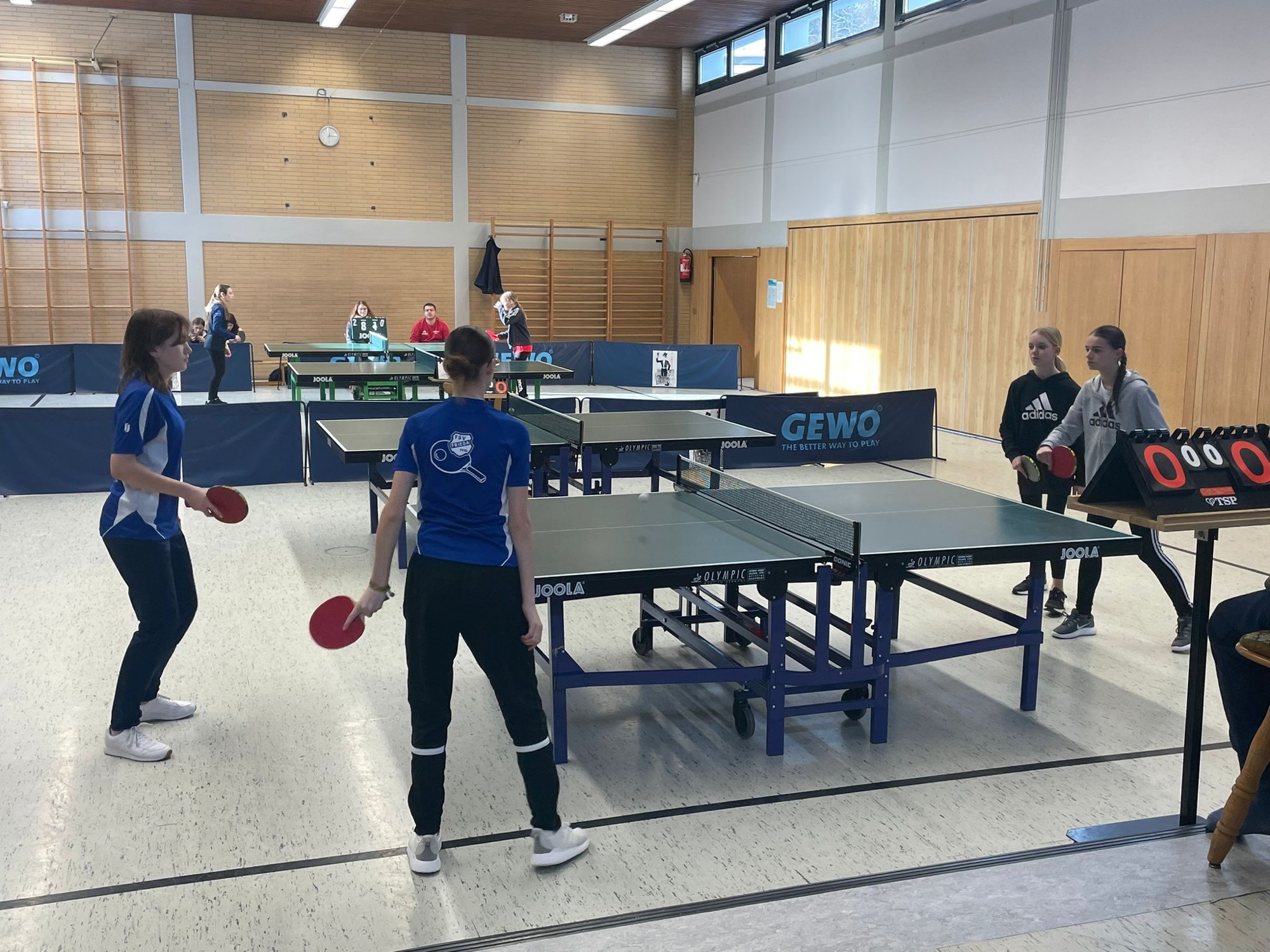 An den Nachbartischen lief zeitgleich die Begegnung TTV Dudenrode – TSV Frieda M15 II. Lilly Störbrauck zeigte gegen Hartmann erneut eine super Leistung und konnte mit 11:2, 11:2, 11:6 klar gewinnen. Nebenan konnte Helene Kachel in ihrem ersten Einsatz für den TSV Frieda gegen Krug bereits ihren ersten Erfolg verbuchen und 3:1 gewinnen. Auch im Doppel überzeugten Lilly Störbrauck / Helene Kachel gegen Hartmann / Krug klar mit 3:0, was schließlich zum 3:0 Endstand für unsere neue 3. Mannschaft führte.