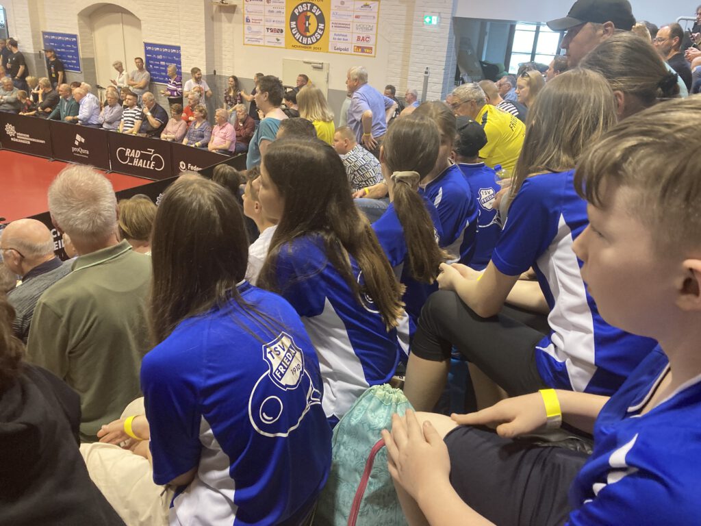 Aufgrund dieser tollen Leistungen hatte die TT-Jugendabteilung als Dankeschön am 06.05.23 zu einem kleinen Ausflug eingeladen. Ziel war das erste Play-Off Halbfinalspiel der Bundesliga zwischen dem Post SV Mühlhausen und der Borussia Düsseldorf mit ihrem Stars Timo Boll und dem amtierenden deutschen Meister und Europameister Dang Qui.