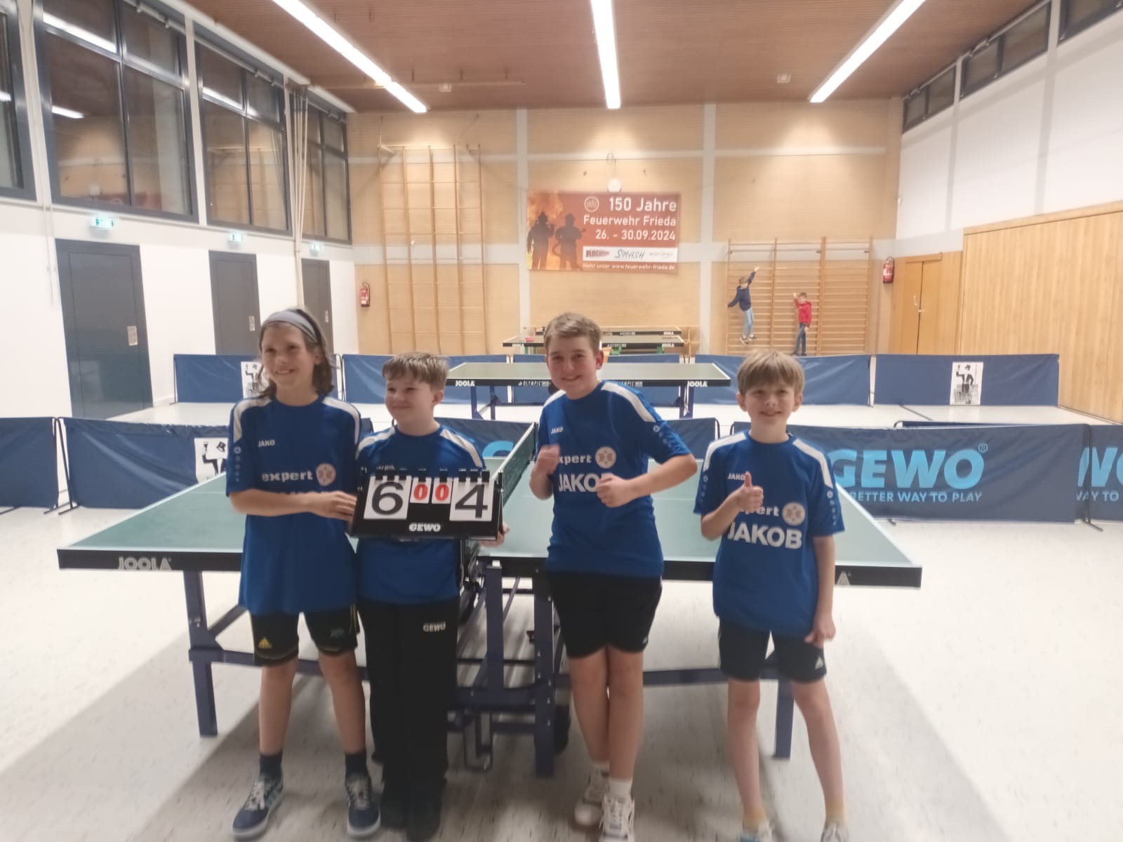 Als das abschließende Einzel gespielt war, lagen sich die Spieler des TSV 1910 Frieda am Dienstagabend in den Armen: Nach weniger als 2 Stunden Spielzeit hatten sie gerade für den nicht unverdienten 6:4-Endstand (19:15 Sätze) in der Jungen 15 Kreisliga Partie gegen den MTV 03 Unterrieden gesorgt.