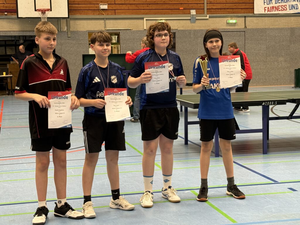 Bei den Mädchen 19 war das Feld recht überschaubar. Dennoch gaben Helene Kachel und Kyra Völzke ihr Bestes. Während es Kyra in die Endrunde schaffte, schied Helene leider bereits in der Gruppenphase aus. Im Endspiel unterlag Kyra am Ende gegen Luca Blasini (TSG Quentel) und belegte somit einen tollen 2. Platz.