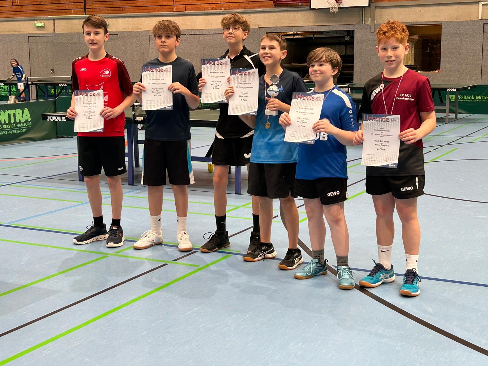 Die Jungen 13 stellten das zweitgrößte Teilnehmerfeld. Hier traten insgesamt 16 Spieler in vier Gruppen an. Timo Völzke und David Fischer vertraten hier das TSV Trikot.