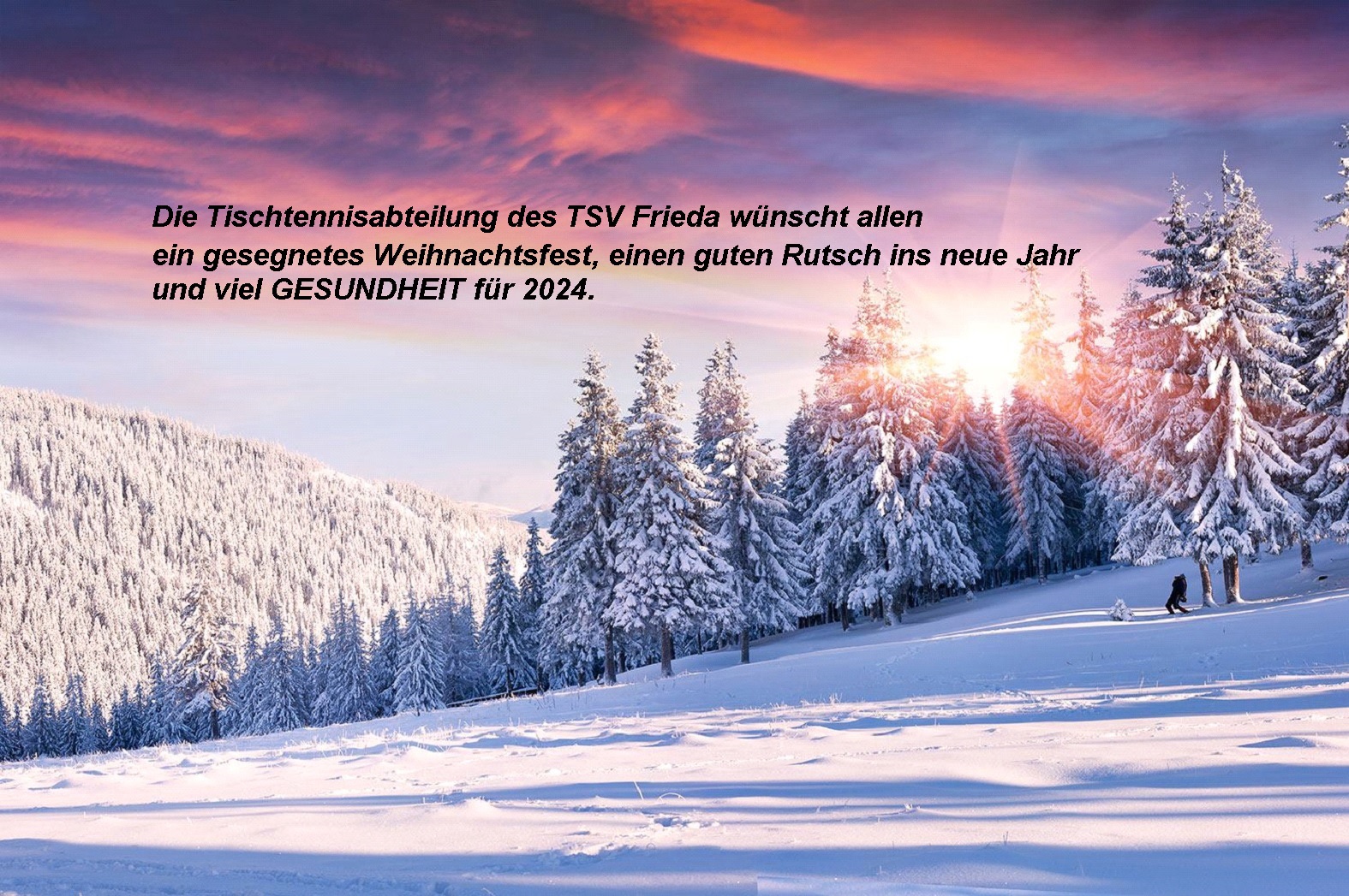 Weihnachtsgrüße der Tischtennisabteilung 23. Dezember 2023 | Kategorie: 1. Herren-Mannschaft, 2. Herren-Mannschaft, Allgemein, Tischtennis, Tischtennis-Jugend, TSV Frieda, TT-Jugend Jungen, TT-Jugend Mädchen